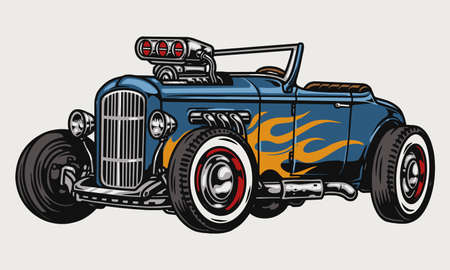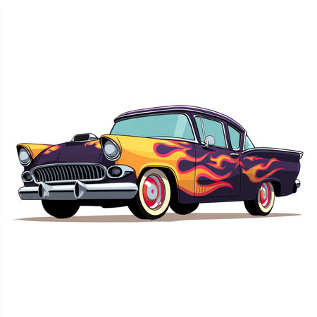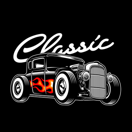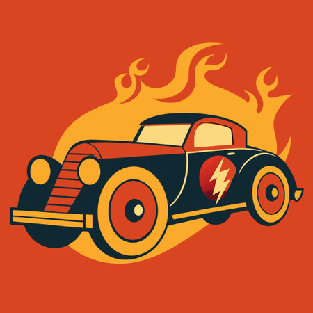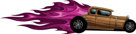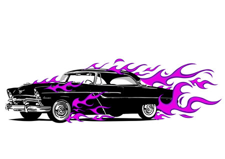 Vector illustration of a retro car with flames on a white background.