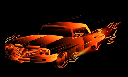 fiery fantasy retro stylized car vector illustration against black background (EPS10)