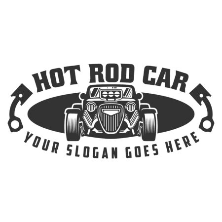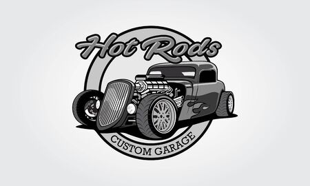 Hot Rods Costume Garage Vector Logo Template. Vector logo black white design with illustration of hot rods.