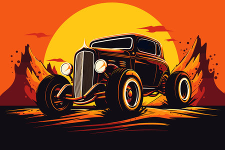 A vector illustration of a vintage hot rod.