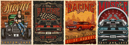American custom cars vintage colorful posters