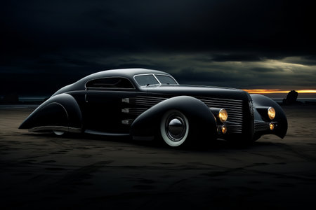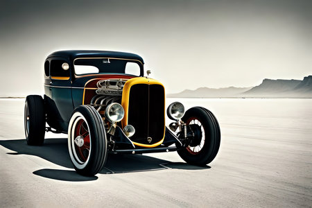 Vintage Hot Rod In Salt Flats. Illustration. Generative AI