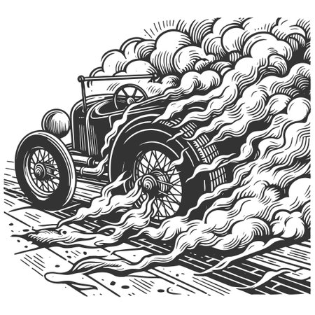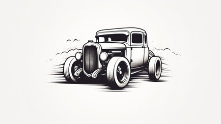 this hot rod icon, rendered in intricate ink etching style, pops against a crisp white background, showcasing the sleek, curved lines and bold, chromed accents of a vintage speedster, evoking the thrill of american muscle cars and nostalgic drag racing culture. ai generated
