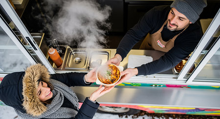 Poor people get free food from volunteers: Concept serving free food to the poor