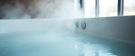 Tranquil spa atmosphere conveyed through diffused steam gradients and subtle cool-toned washes, fostering deep relaxation and elegance. Suited for wellness apps, luxury accommodation visuals, beauty regimen graphics, and self-care social media content targeting hospitality professionals and lifestyle influencers. Precise layering of translucent effects ensures adapta... AI-generated illustration.