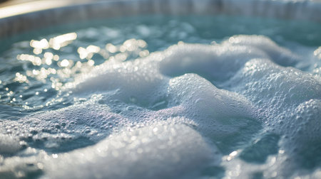 Gentle foam collecting in the corner of a jacuzzi, close-up showing soothing relaxation vibes