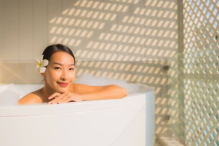 Portrait young asian woman relax take a bath in bathtub for spa concept