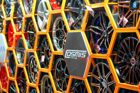 Nonthaburi, Thailand - DEC 3, 2019: Car alloy wheels at The 36th Motor Expo Thailand 2019 at IMPACT Arena, Muang Thong Thani, Nonthaburi, Thailand.