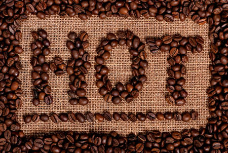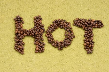 Word hot made from coffee beans on burlap