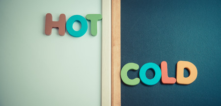 Wooden word HOT and COLD on black board and white board in Vintage style