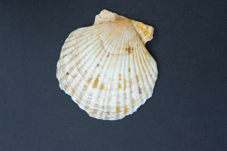 Scallop shell on a dark background close-up macro photography