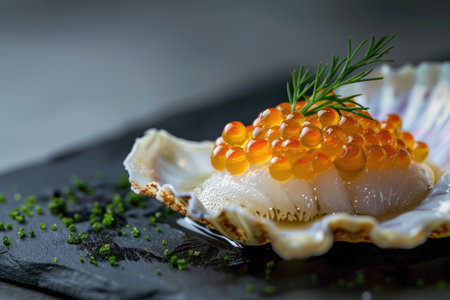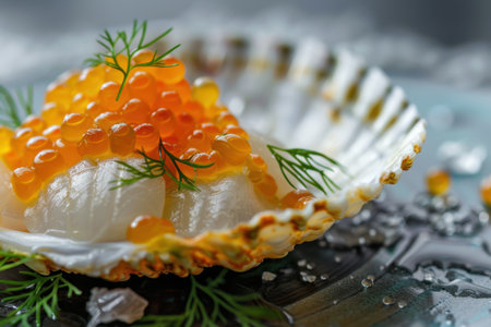 Yellow Caviar Half Shell Gourmet Dish Luxury Food