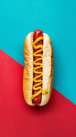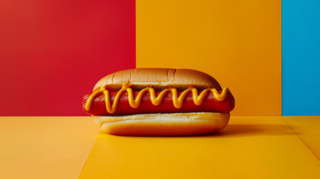 Classic Hot Dog with Mustard on a Colorful Background