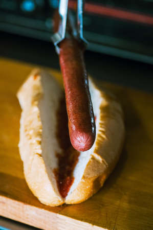 Hotdogs in making. close up.