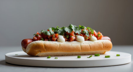 AI Generated. Gourmet Hot Dog with Fresh Salsa and Sauce