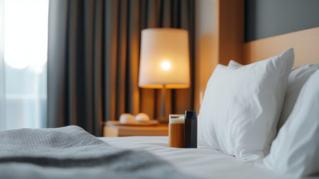 Comfortable hotel room featuring inviting bed and modern amenities with suitcases standing near bedside. Ideal for travelers seeking comfort during their stay