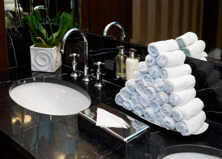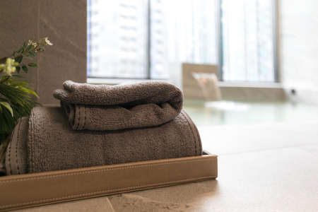 Clean towels on a marble table-top