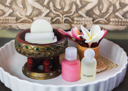 Mini set ofsoap, shampoo,conditioner with flowers frangipani