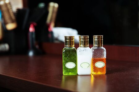 Set shampoos for bathing. Photo Close-up