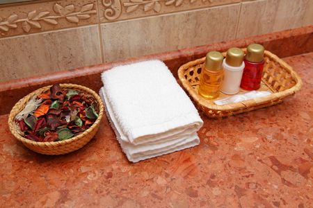 Bath additives with white towels