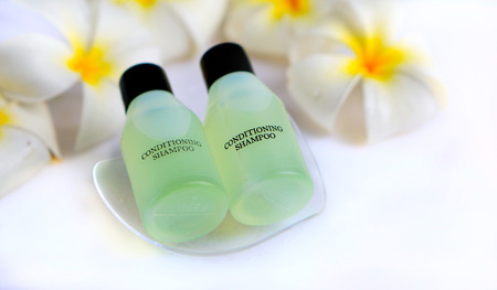 Shampoo, hair conditioner and body soap provided in the hotel bathroom