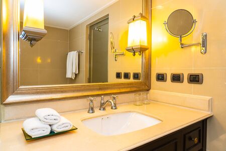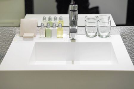 Interior of a hotel bathroom close up detail composition