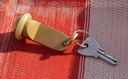 old metal keychain and guesthouse room key