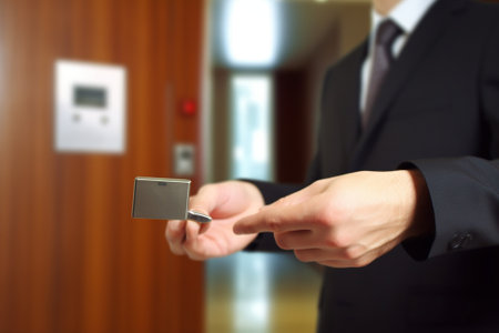 Hand Holding Key card Hotel room access
