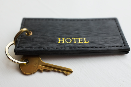 Close up of Hotel key with tag. Shallow DOF