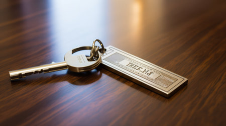 Hotel room key on a table