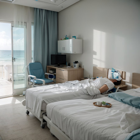 Luxury hospital room with beach and sea view in medical tourism concept ing of home interior for self isolation quarantine from c