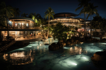 Luxury interior of a luxury hotel resort. Nightlife.