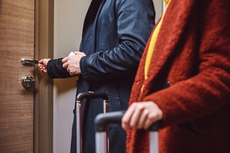 Arriving at a hotel room, concept