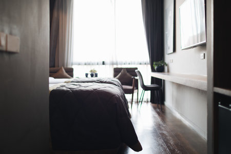 Blured Interior of modern comfortable hotel room.