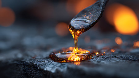 Capture the essence of nature's sweetness with this striking image of golden honey dripping gracefully against a dark backdrop, showcasing its rich texture and allure.