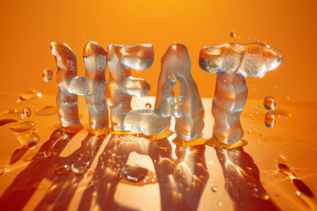 Text extreme heat in melting ice effect with shadows on bold orange background, AI generated