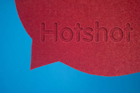 Speech bubble in front of colored background with Hotshot text.