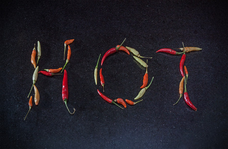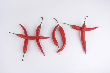 The word HOTwith red peppers