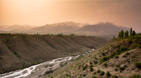 Mountain stream flowing down the beautiful valley in the Karakorum near Khaplu in Central Karakorum National Park