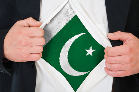 The Pakistani flag painted on the chest of a man