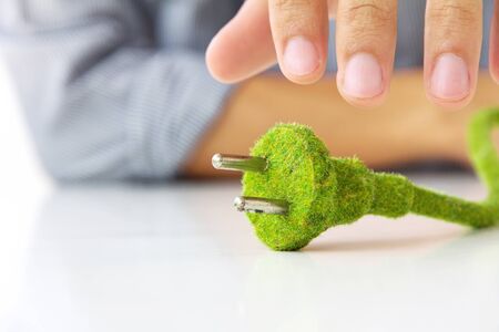 hand holds Electric plug. Isolated on a white background. shallow dof