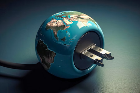 illustration of globe of earth with socket. concept of green energy and ecology. Generative AI.