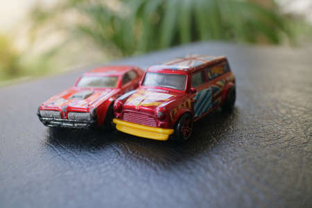 SEMARANG, INDONESIA 25 august 2021: Collection of toy cars, Hot Wheels in red color. Hot Wheels is a scale die-cast toy cars by American toy maker Mattel
