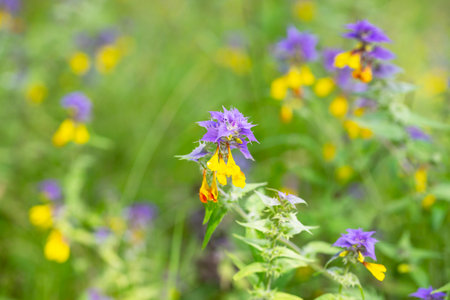Wood cow-wheat, colorful meadow flower, detail of summer flower, Melampyrum nemorosum.
