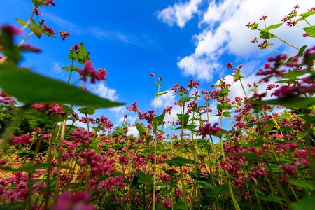 Many pink flowers and Chinese meadow-rue flowers with beautiful round buds.