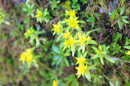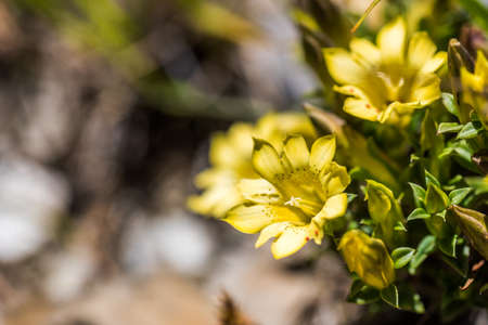 native species of yellow Gentiana flowers living at Hehuan Mountain in the daytime