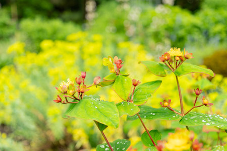 Saint Gallen, Switzerland, June 23, 2024 Hypericum Androsaemum or tutsan plant at the botanical garden