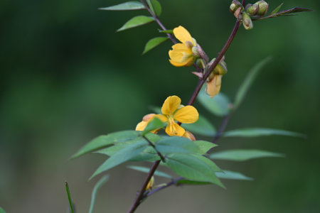 Senna occidentalis plant flower. Its common names septicweed, coffee senna, coffeeweed, Mogdad coffee, senna coffee, Stephanie coffee flower and stinkingweed.