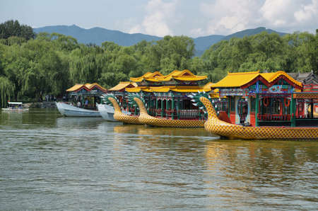 BEIJING, CHINA - SEPTEMBER 06: Yellow dragon boats at the summer palace on September 6, 2015 in Beijing, China.The Summer Palace is the best preserved imperial garden in the world.