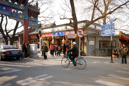Beijing, China-March 26, 2010:A hutong is an ancient city alley or lane typical in Beijing, where hutongs run into the several thousand. Hutongs represent an important cultural element of the city of Beijing. The hutongs are residential neighborhoods whic